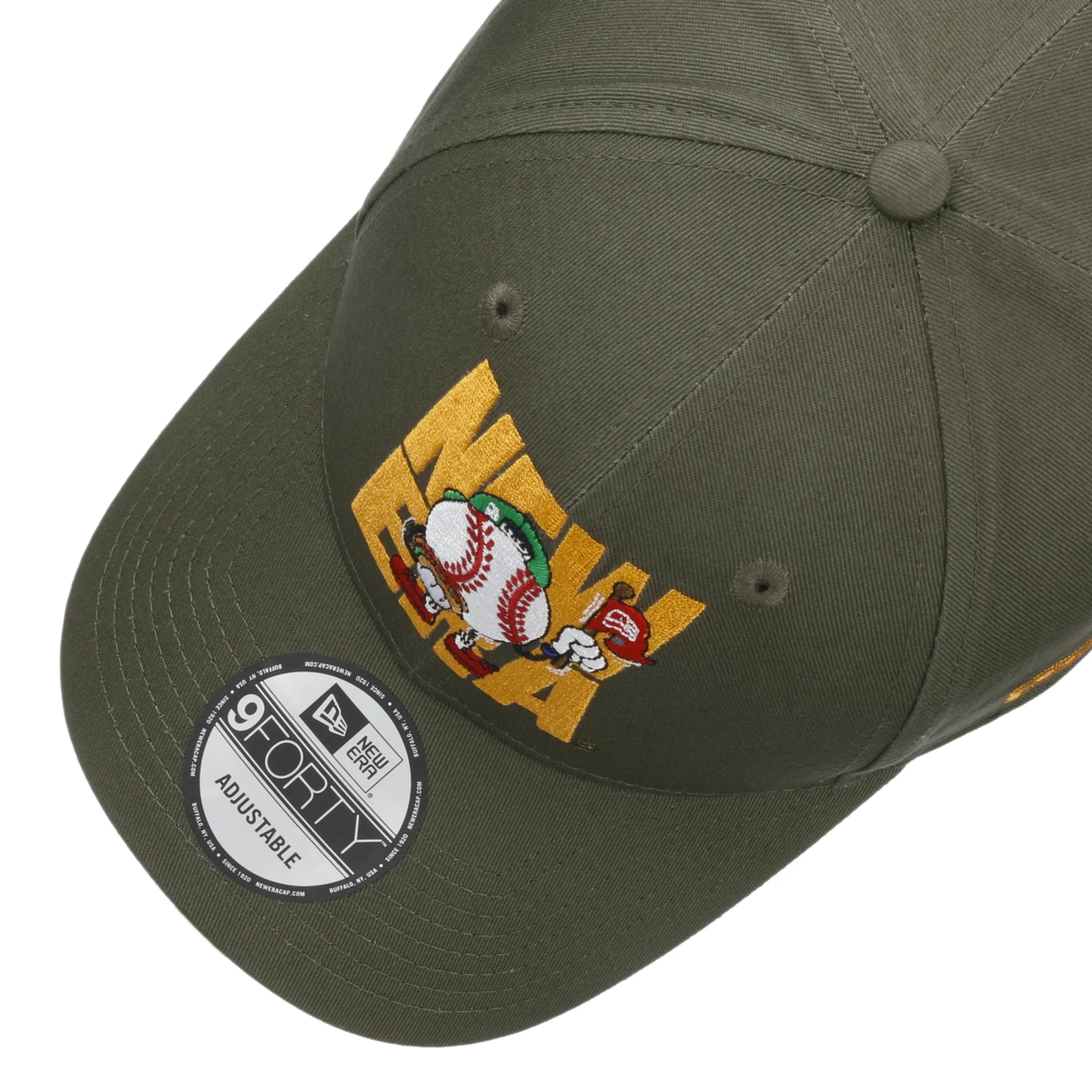 Die klassische, konventionell geschnittene 9Forty Camp Patch Cap aus dem Hause New Era hat eine verstärkte Front sowie einen vorgebogenen Schirm von 7 cm Länge.