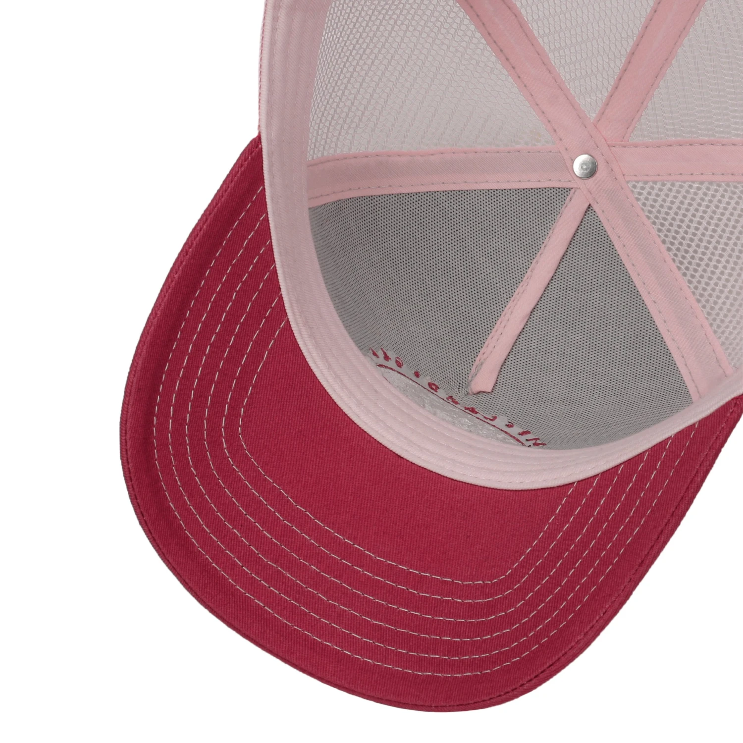 Eine luftige Netzstruktur verbessert die Luftzirkulation, während der trendig gebogene Schirm Gesicht und Augenpartie vor der Sonne schützt.