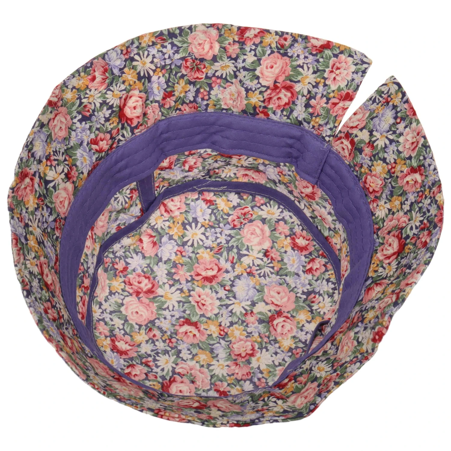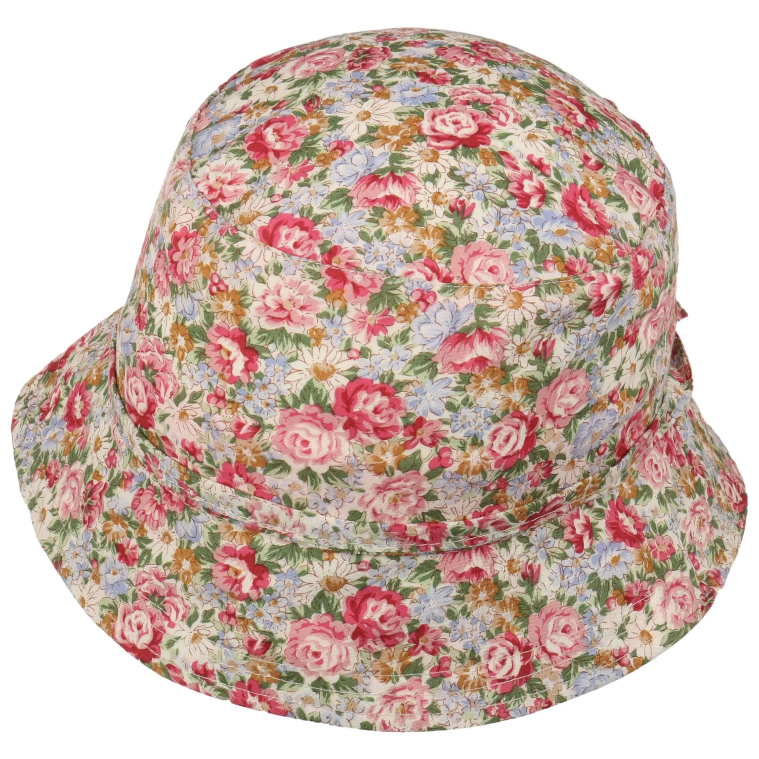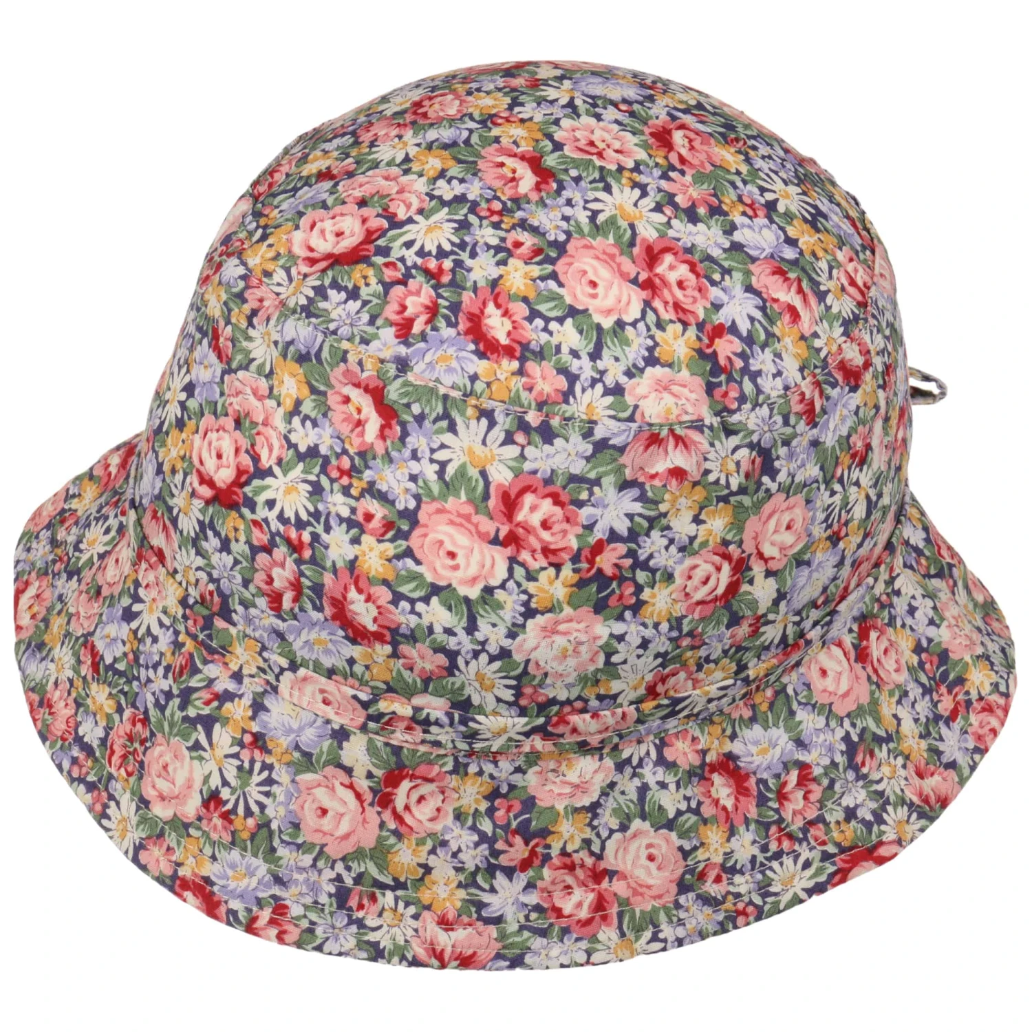 Das attraktiv gestaltete Blumenmuster, das den gesamten Stoffhut von Lipodo ziert, weckt anregende Sommergefühle.
