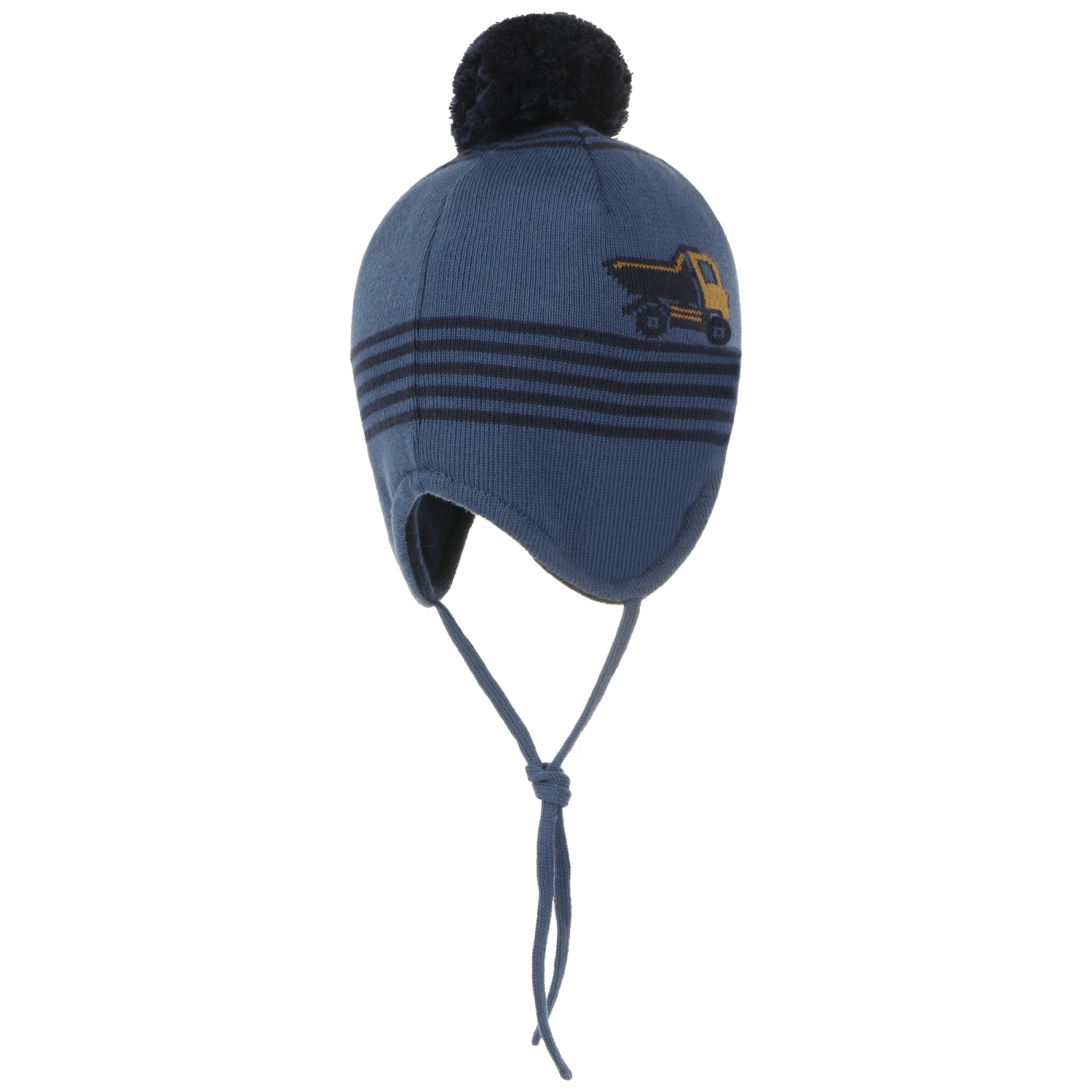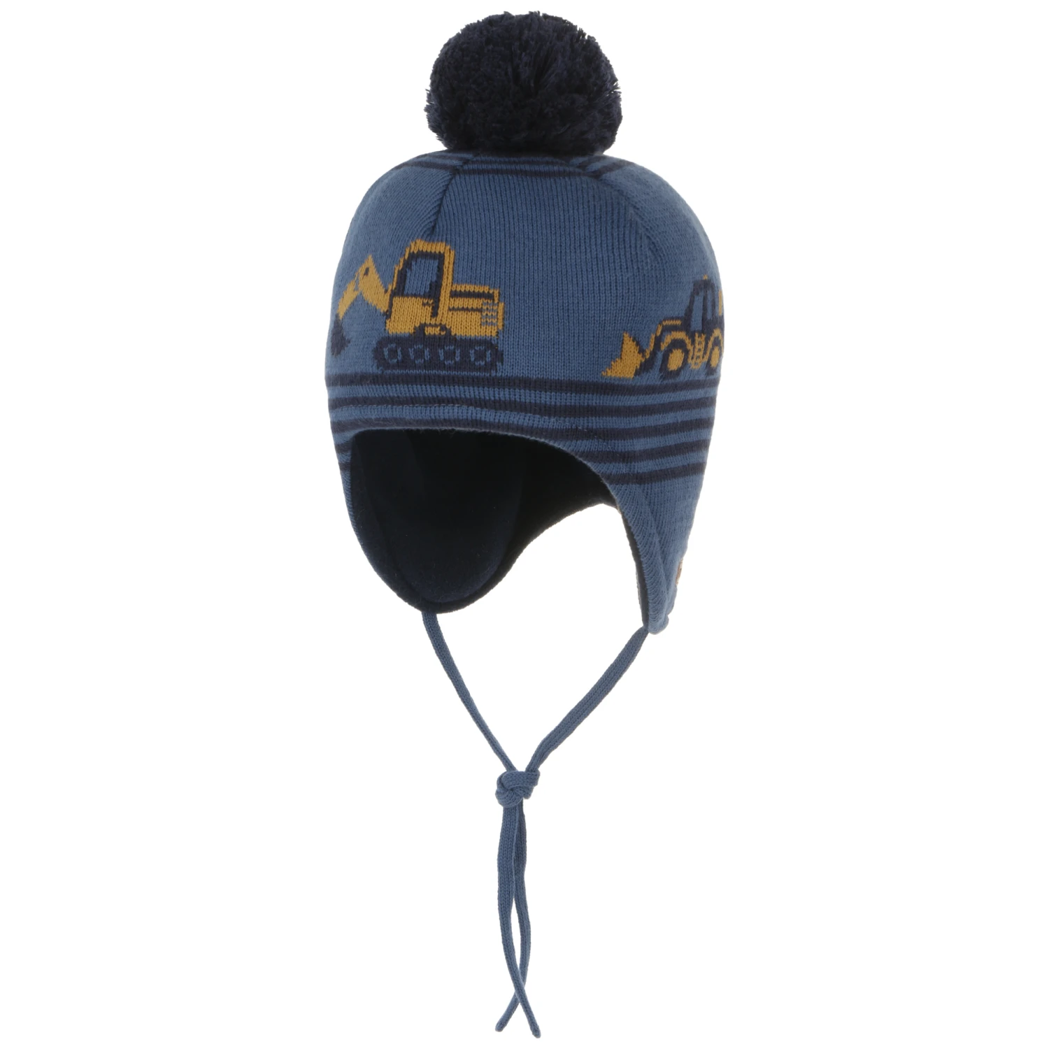 Ihre flauschige Qualität erhält die Bommelmütze durch Baumwolle in feinem Strick, unterstützt von wärmeisolierendem Fleecefutter, das sich in den seitlichen Verlängerungen bis über die Ohren anschmeichelt.