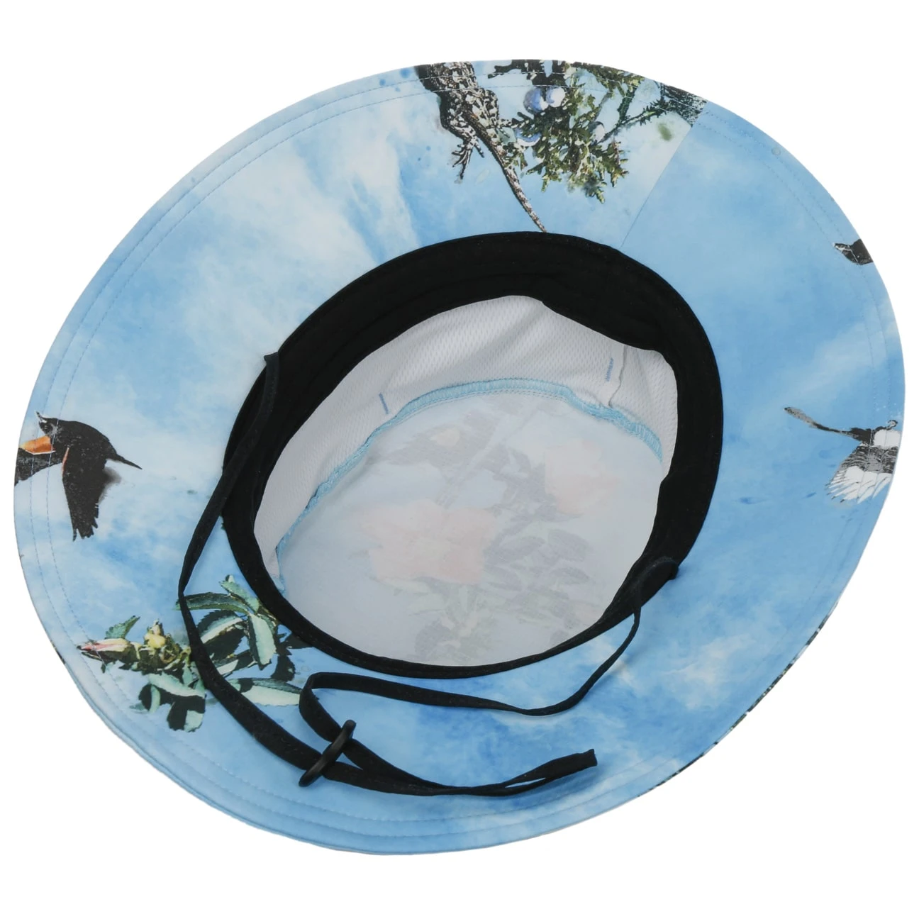 Zudem weiß er aufgrund mit seinem mehrfarbigen Look ebenso optisch zu überzeugen. Praktisch punktet der Sommerhut mit einer circa 8 cm breiten Krempe, durch die ein exzellenter Blendschutz gewährleistet ist. Dank des Kinnbandes geht er auch bei Wind nicht verloren.