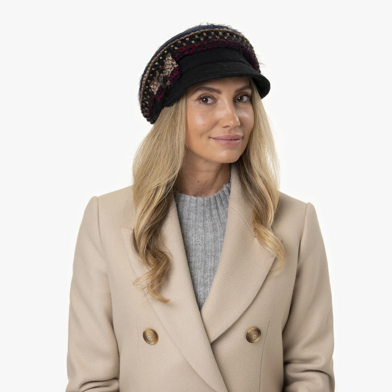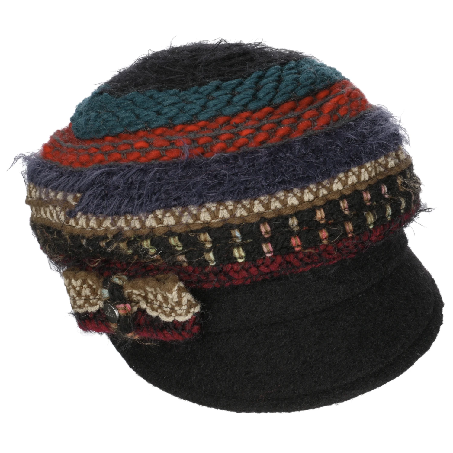 Ein Hauch von femininer Eleganz kommt mit der farbenfreudig gestalteten Schleife zum Ausdruck, die seitlich und oberhalb des Schirms angebracht ist. Zu gut drei Vierteln aus Wolle gefertigt sorgt die originelle Kopfbedeckung für Wärme und Gemütlichkeit an kalten Tagen.