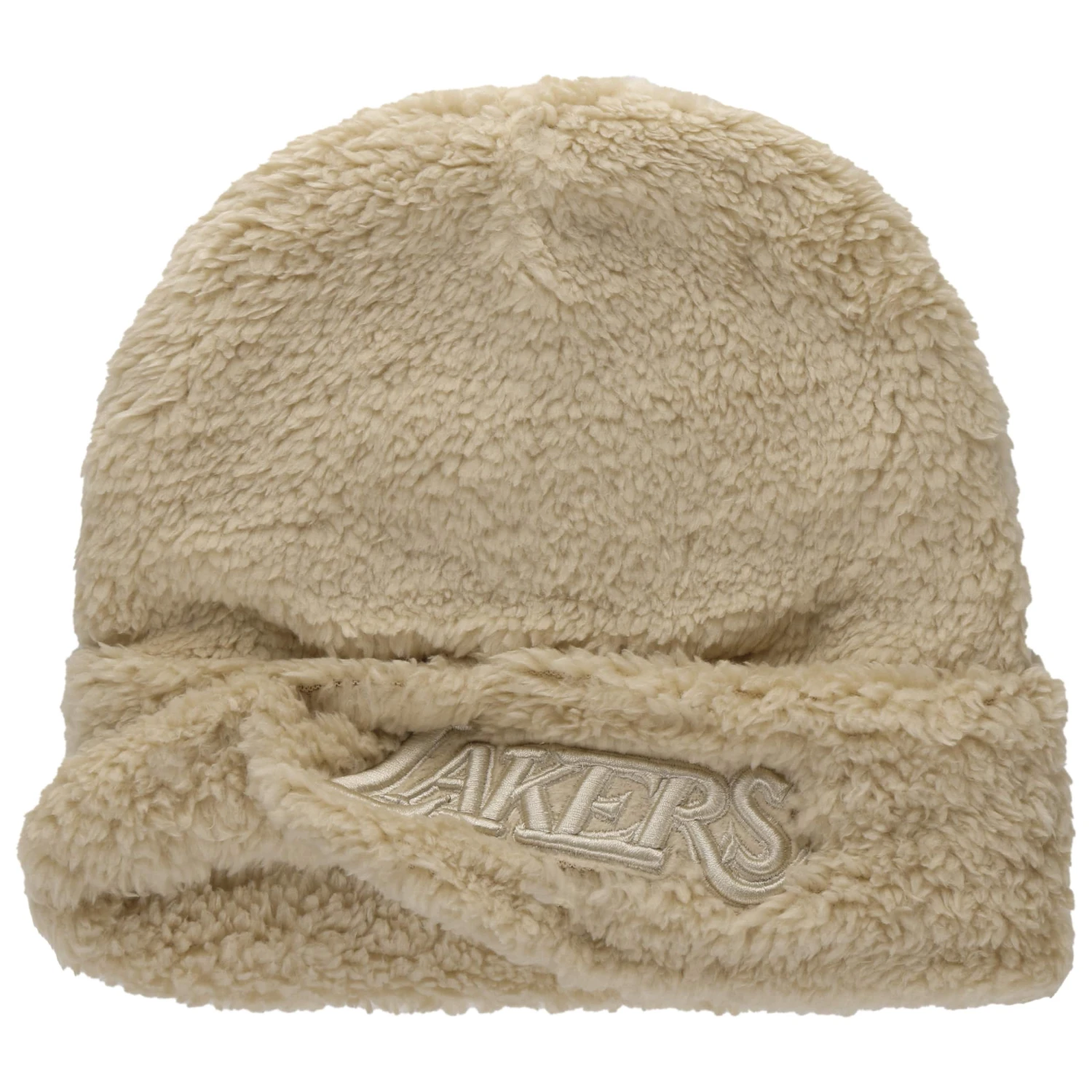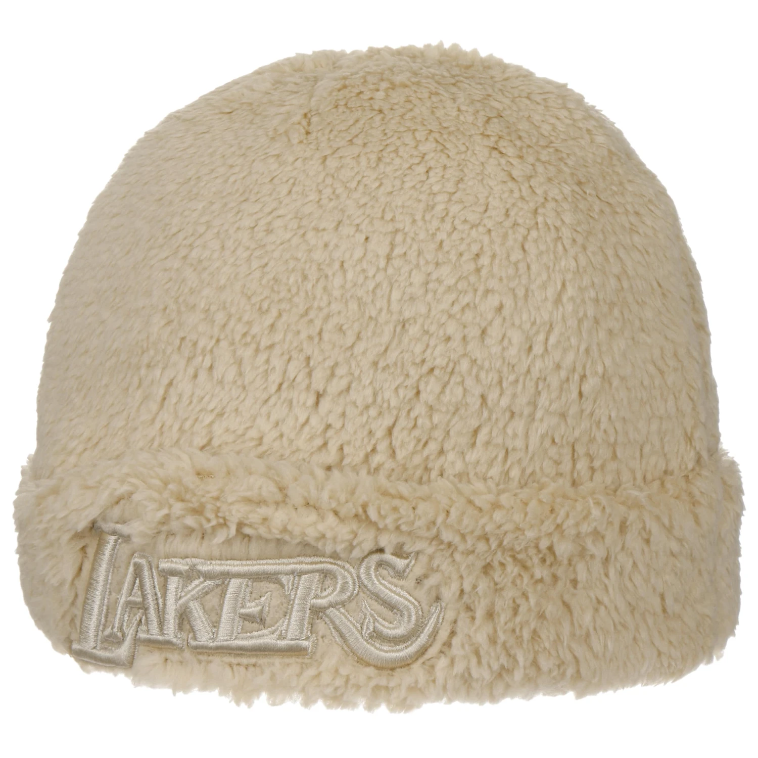 Als Highlight erweist sich das einfarbig gehaltene Material, das hier zum Einsatz kommt. Das voluminöse Teddyfell wirkt in Kombination mit der sportiv anmutenden Form einer schlichten Umschlagmütze ungewöhnlich und anregend – ein attraktiver dynamischer Look, der die Blicke auf sich zieht. Die große Lakers-Stickerei rundet das Design ab.