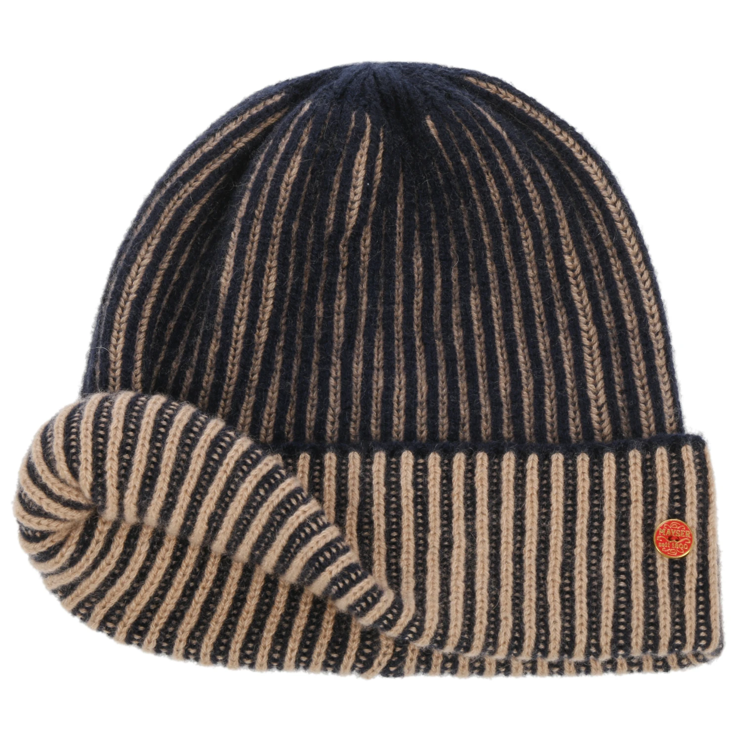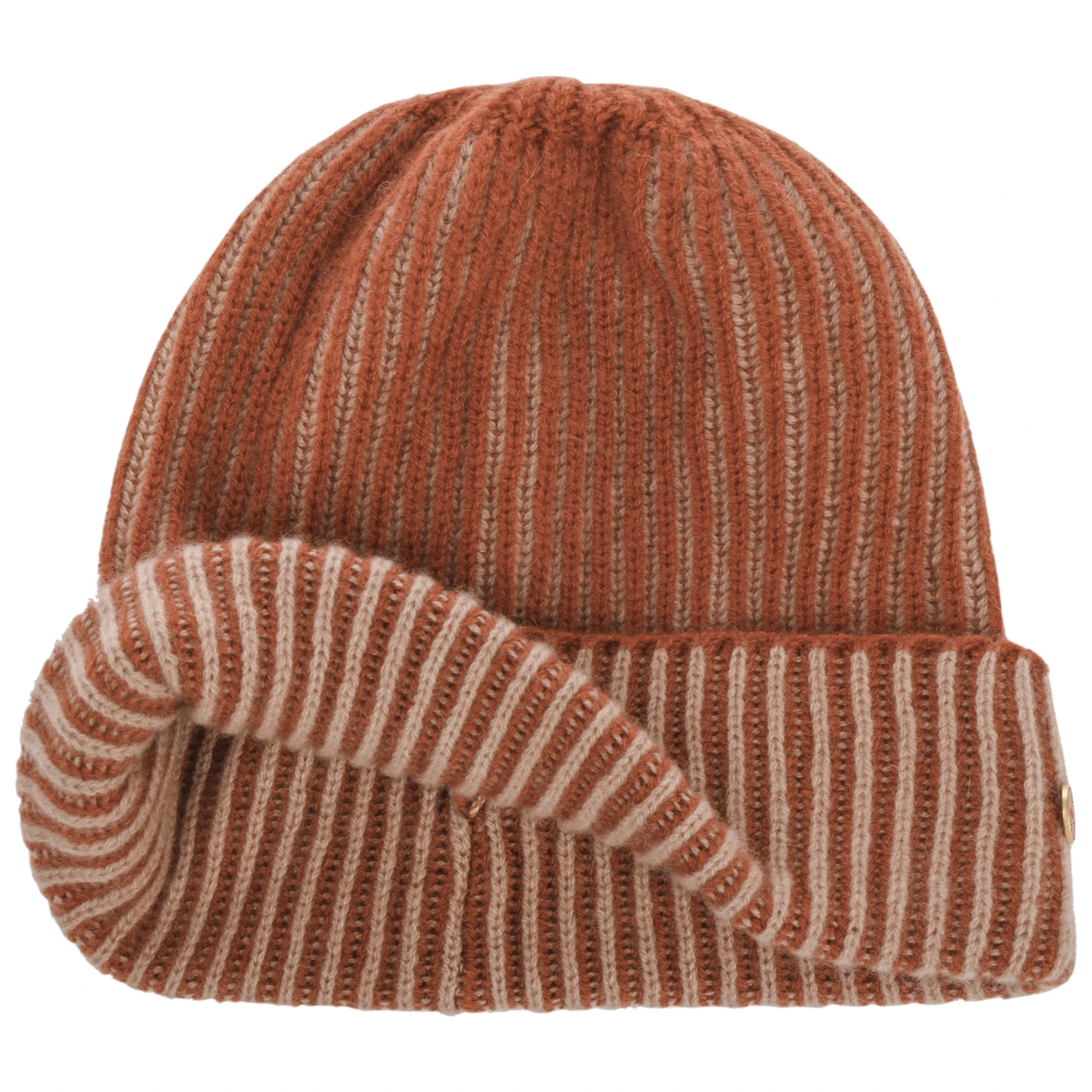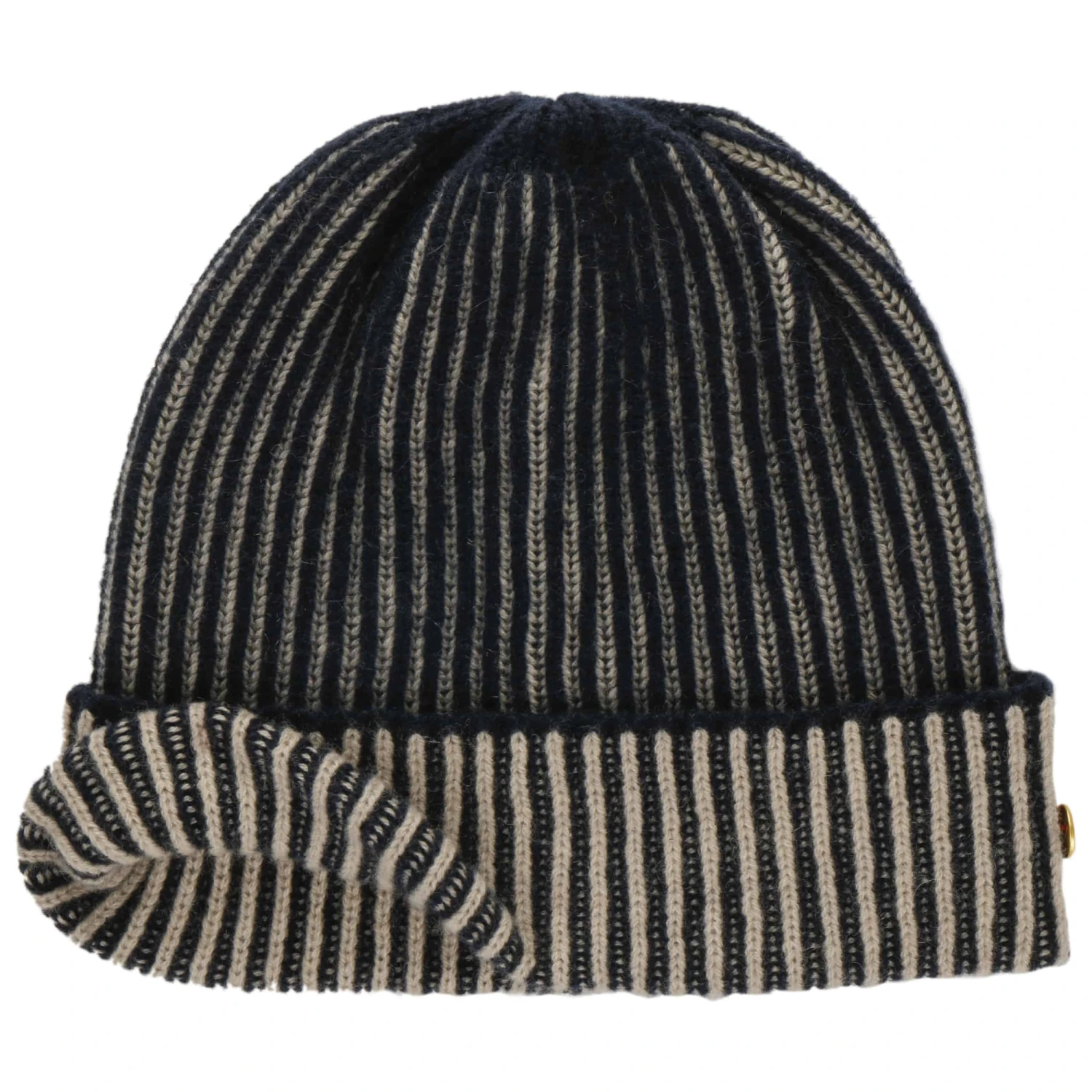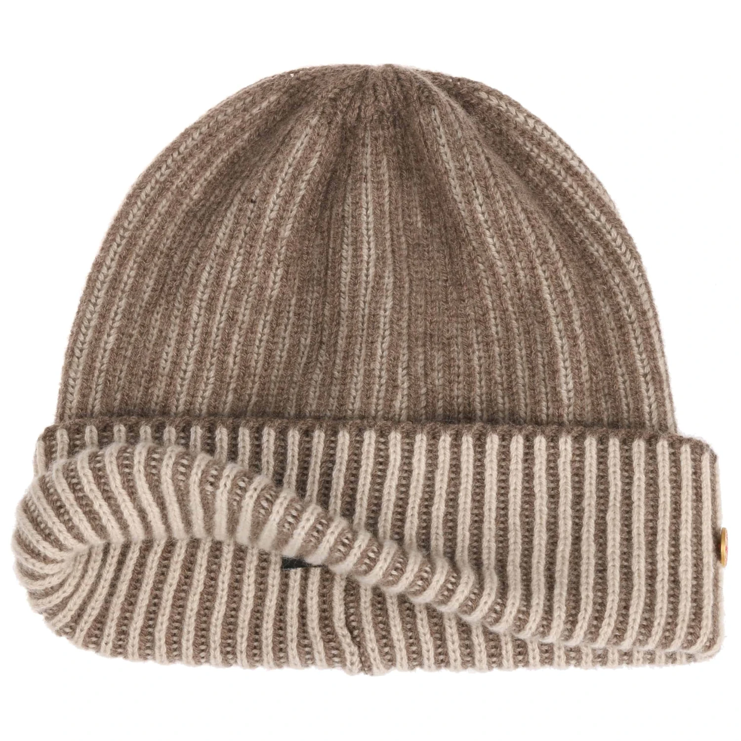 Charakteristisch für die Fasern der Kaschmirwolle ist ihre besonders geschmeidige Haptik. Zudem ist das Material wärmend und schützt vor Regennässe. Das edle Textil trägt auch zur stilvollen Optik der zweifarbigen Strickmütze bei.