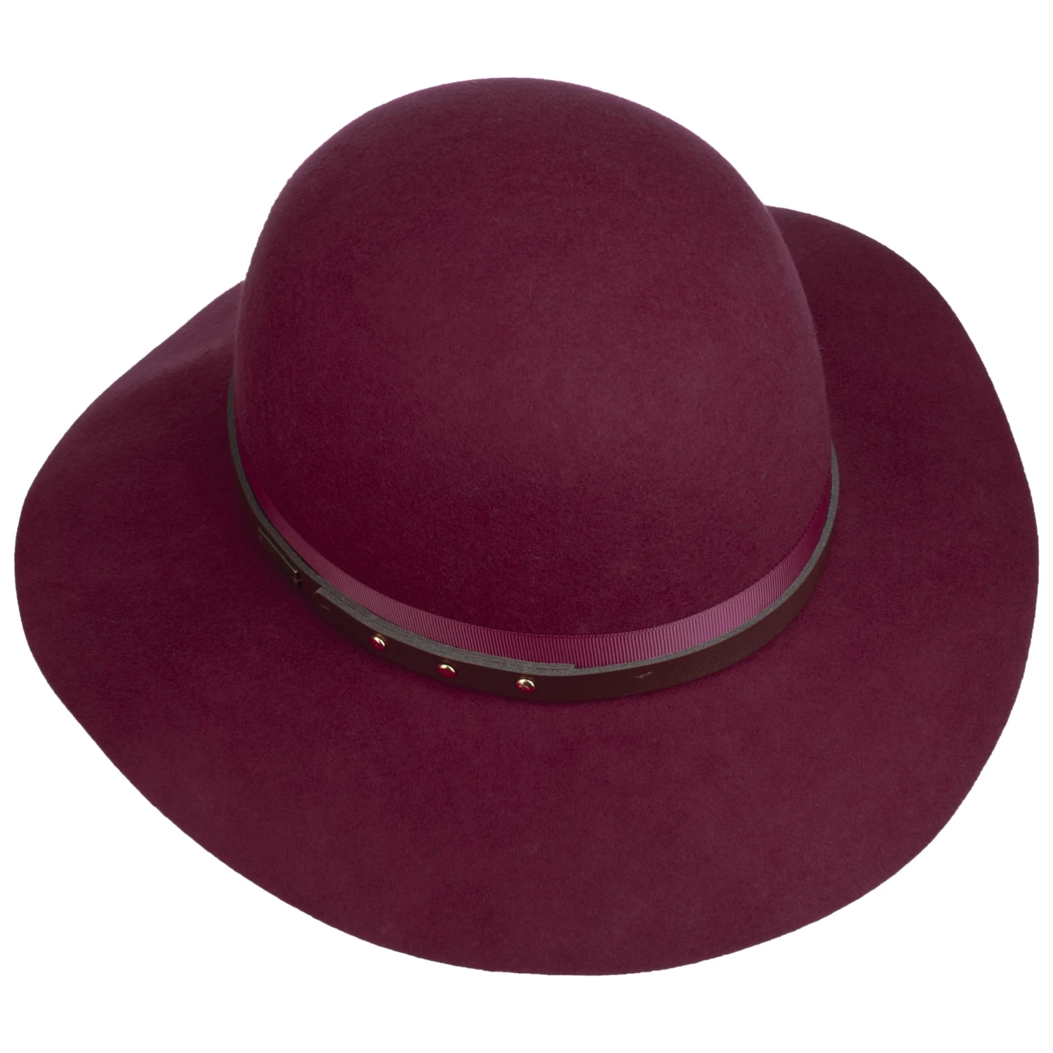 Er lässt sich dank des flexiblen Materials gut im Reisegepäck verstauen. Durch ein im Futterband eingenähtes Bändchen ist das Modell mit breiter Krempe größenverstellbar und kann an den Kopfumfang angepasst werden. Ein breites, farblich abgesetztes Ripsband, kombiniert mit einem schmalen Kunstledergarniturband, verleiht dem stilvollen Filzhut eine extravagante Note.