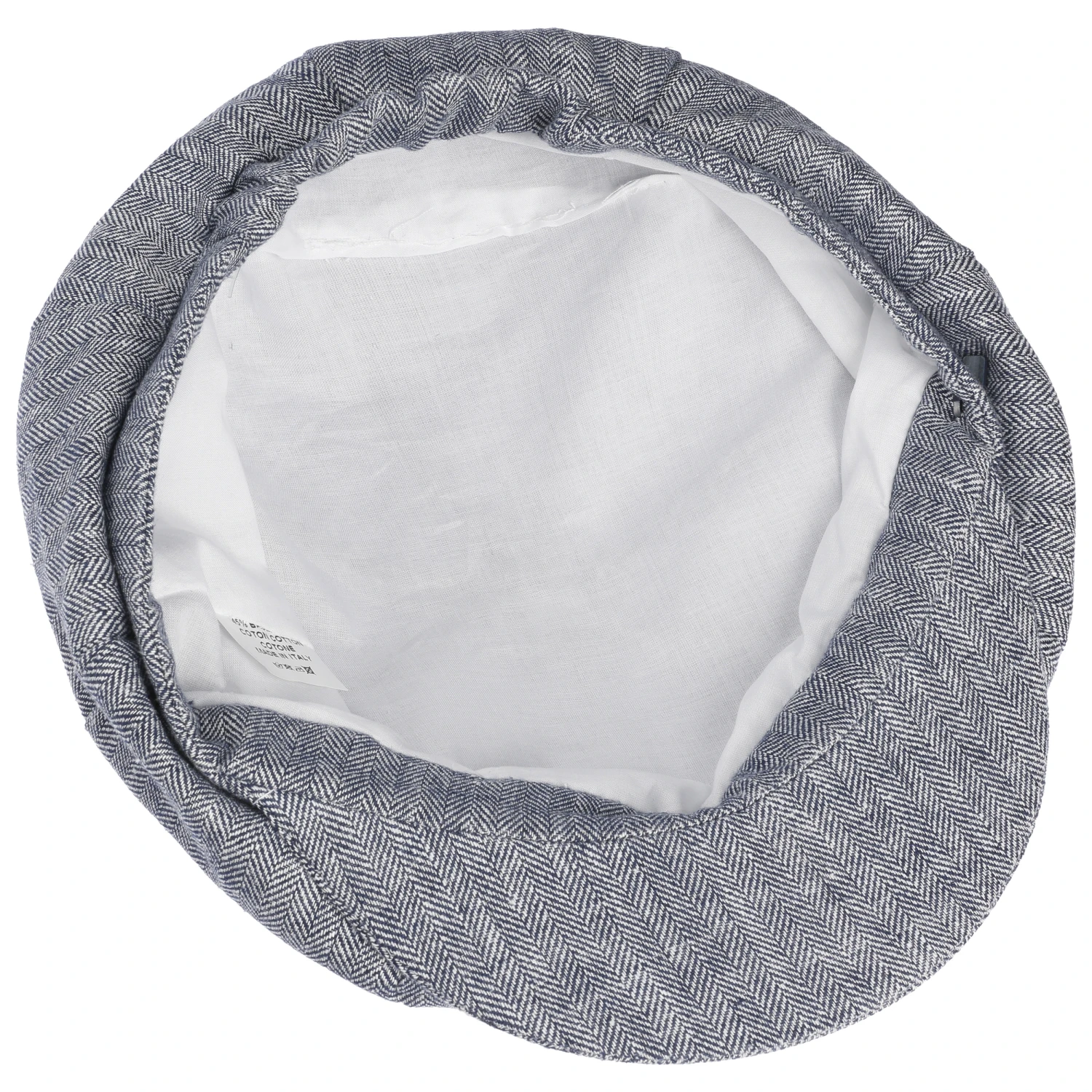 Vom voluminösen Kopfteil bis über den gesamten Schirm ist die sorgfältig verarbeitete Schildmütze mit einem zeitlosen feinen Fischgrätmuster verziert. Anregende Farbkontraste verleihen dem Look der in Italien hergestellten Kopfbedeckung aus Leinen und Baumwolle einen attraktiven jugendlich anmutenden Schwung.