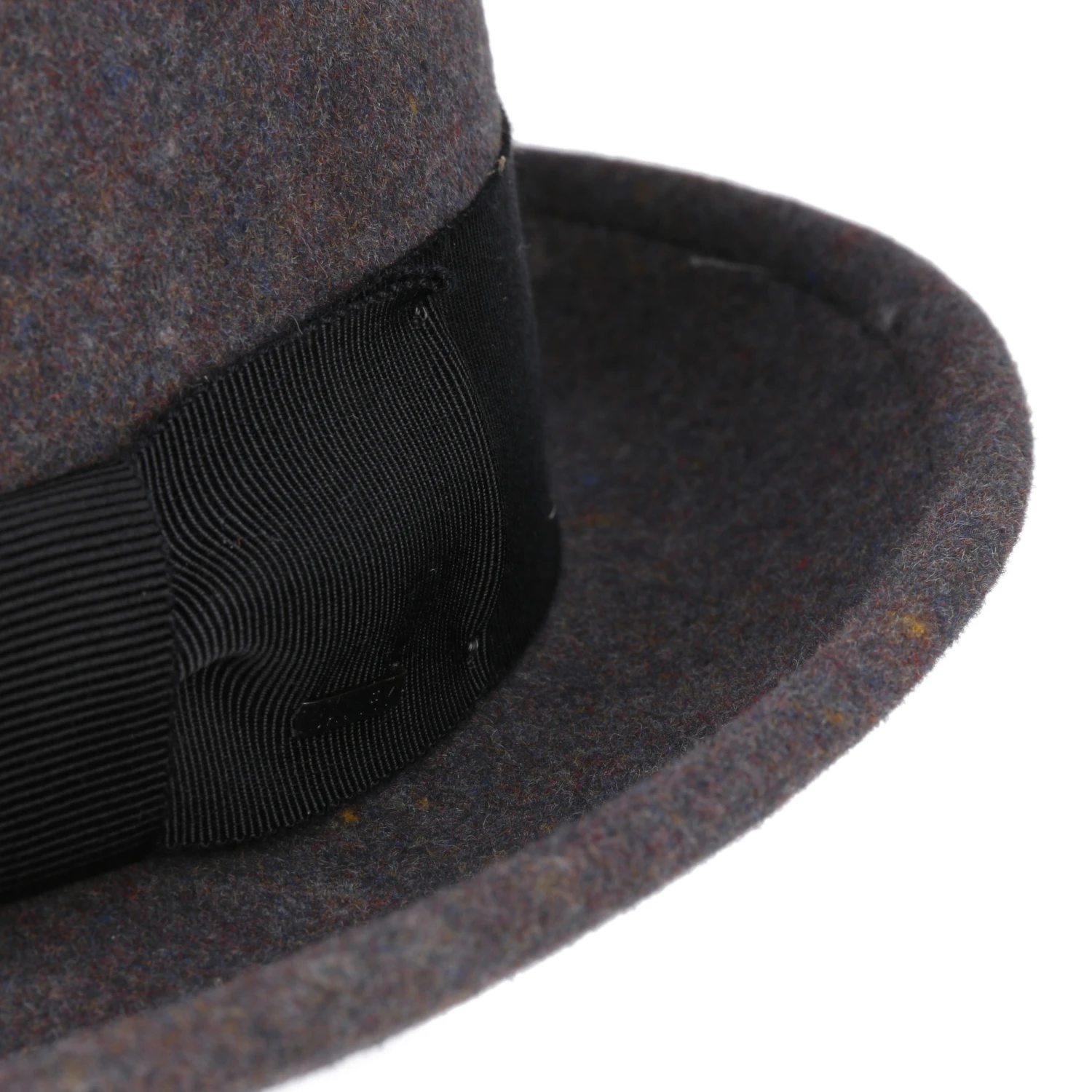 Es sorgt dafür, dass dieser farbenfroh melierte Filzhut auch an feucht-kalten Herbsttagen seinen Stil und seine wärmende Wirkung behält. Und dabei hervorragend aussieht. Das verdankt Hutchins unter anderem dem breiten, kontraststarken Ripsband, das einen Hauch von Eleganz ausstrahlt.