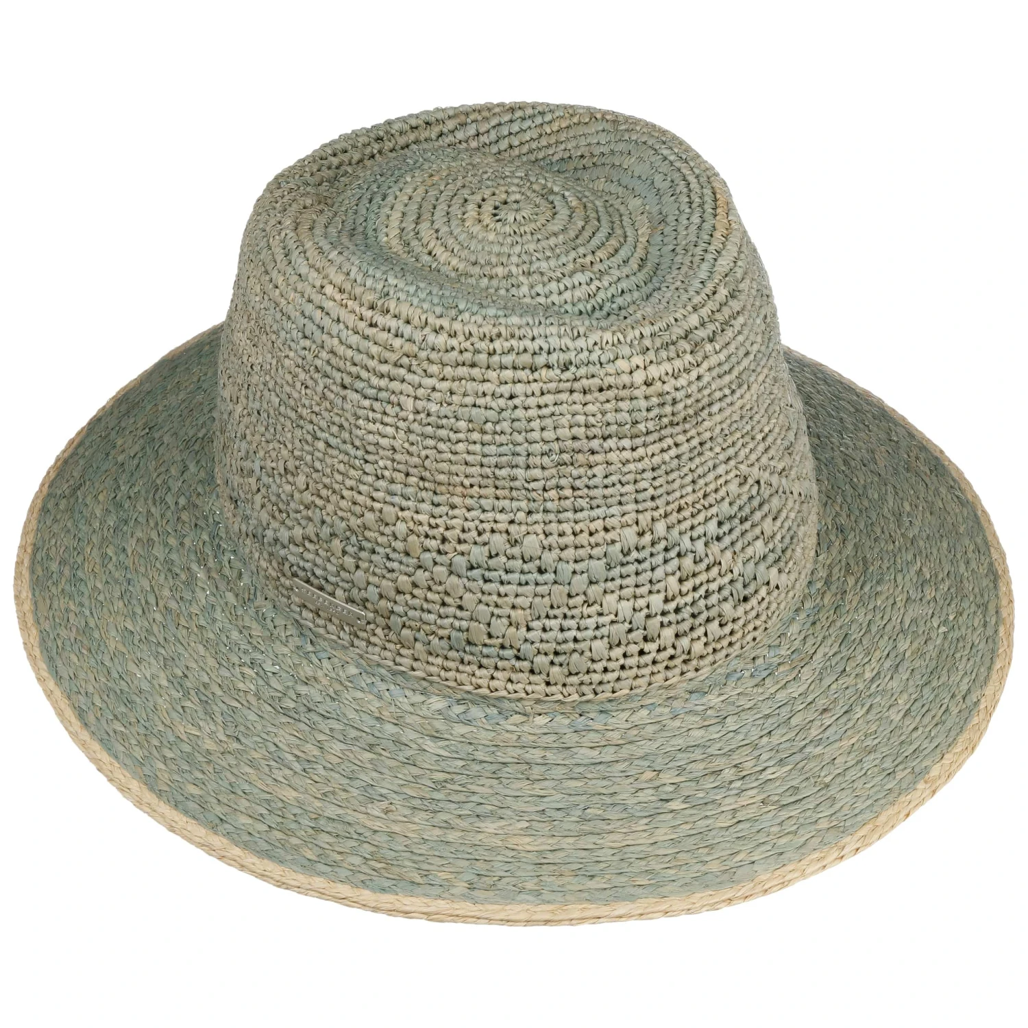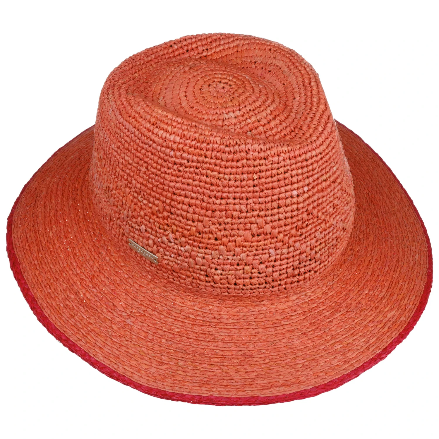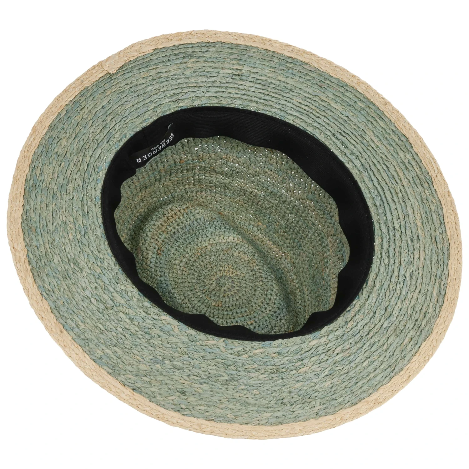 Bei diesem Exemplar hat sich Seeberger für Stroh aus reinen Naturfasern entschieden, was ihm angenehme Leichtigkeit beschert. Willkommen ist zudem die in schrägen Längsstreifen verlaufende luftige Verarbeitung, die ein angenehmes Klima verschafft und den unifarbenen Traveller optisch zusammen mit der farbig abgesetzten Einfassung um die Krempe gekonnt vollendet.