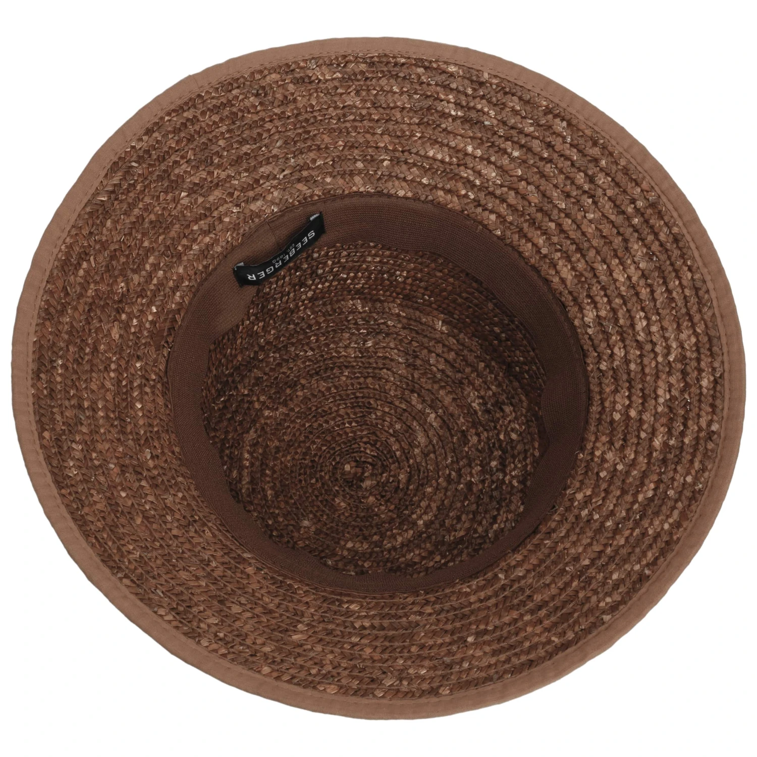 Der aus Naturmaterialien gefertigte Strohhut von Seeberger kommt in einem wunderschönen rotbraunen Farbton.