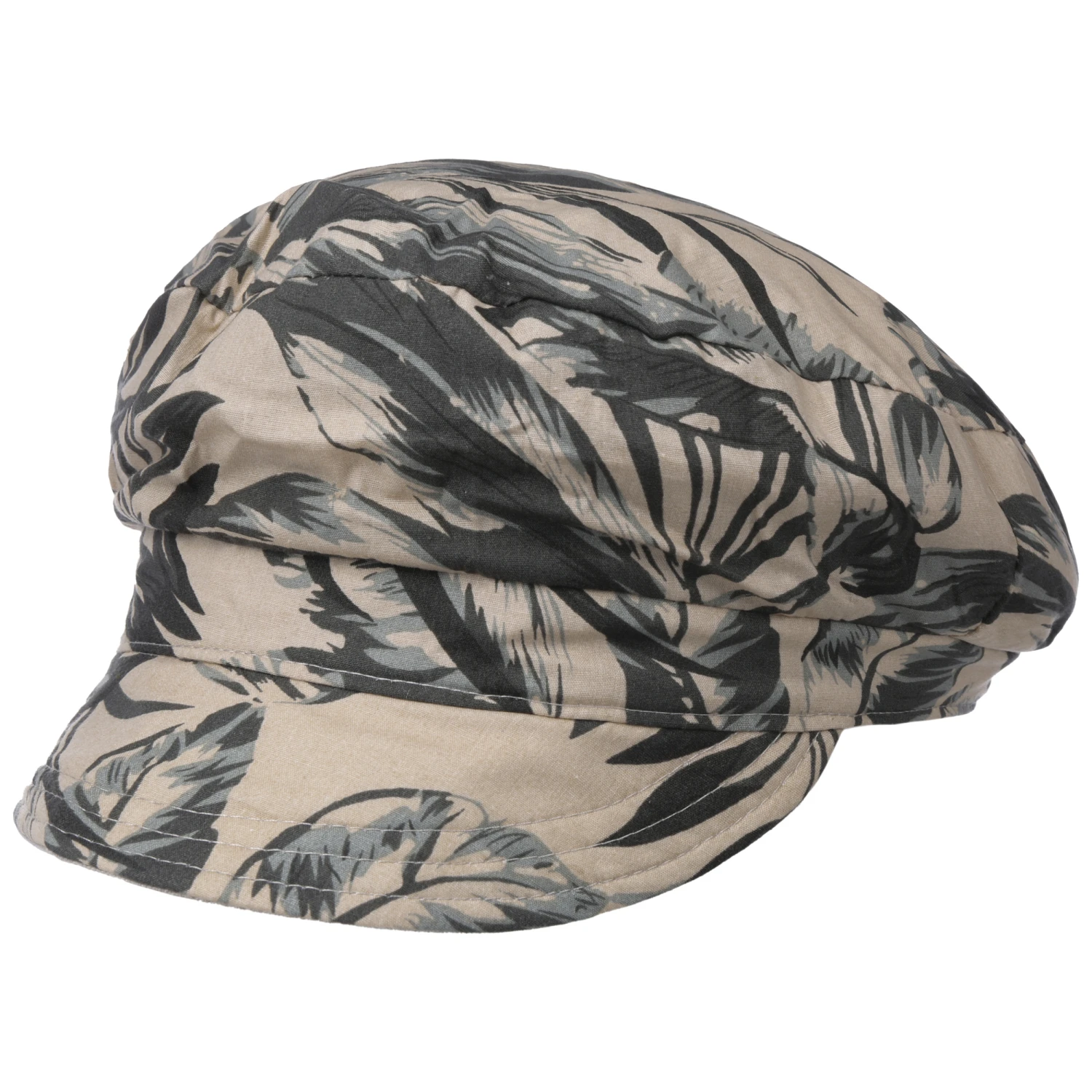 Die Ballonmütze von Lipodo zeigt sich auf der einen Seite unifarben und auf der anderen in stilvoll floralem Muster.