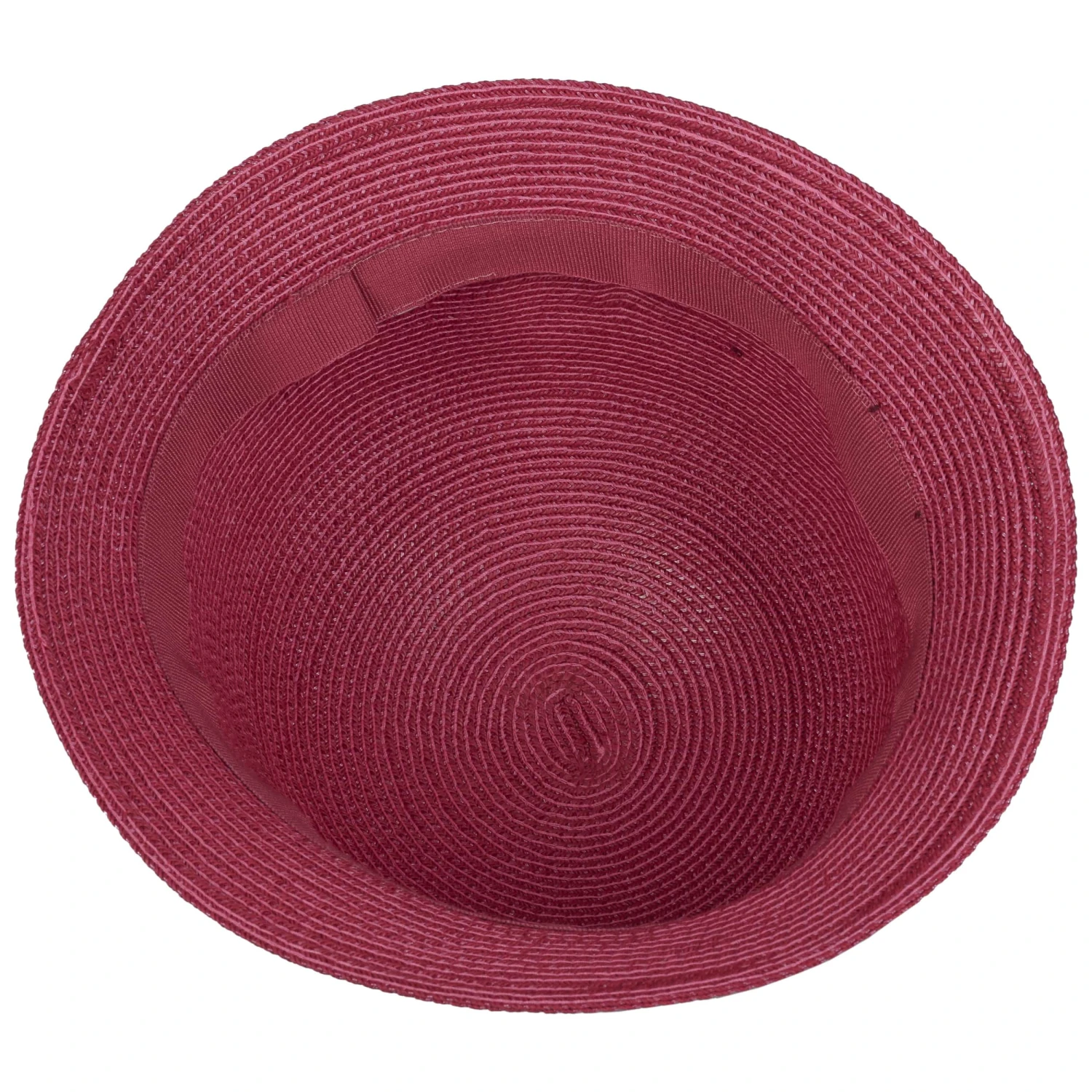 Eine große grobmaschige Schleife setzt sich farblich vom feinsinnig ausgearbeiteten Flechtwerk des Strohhutes ab. Auf dem stilvollen Schmuck ist eine sanft schimmernde Deko-Perle befestigt, die ihrerseits von elegant funkelnden Steinen in Szene gesetzt wird.