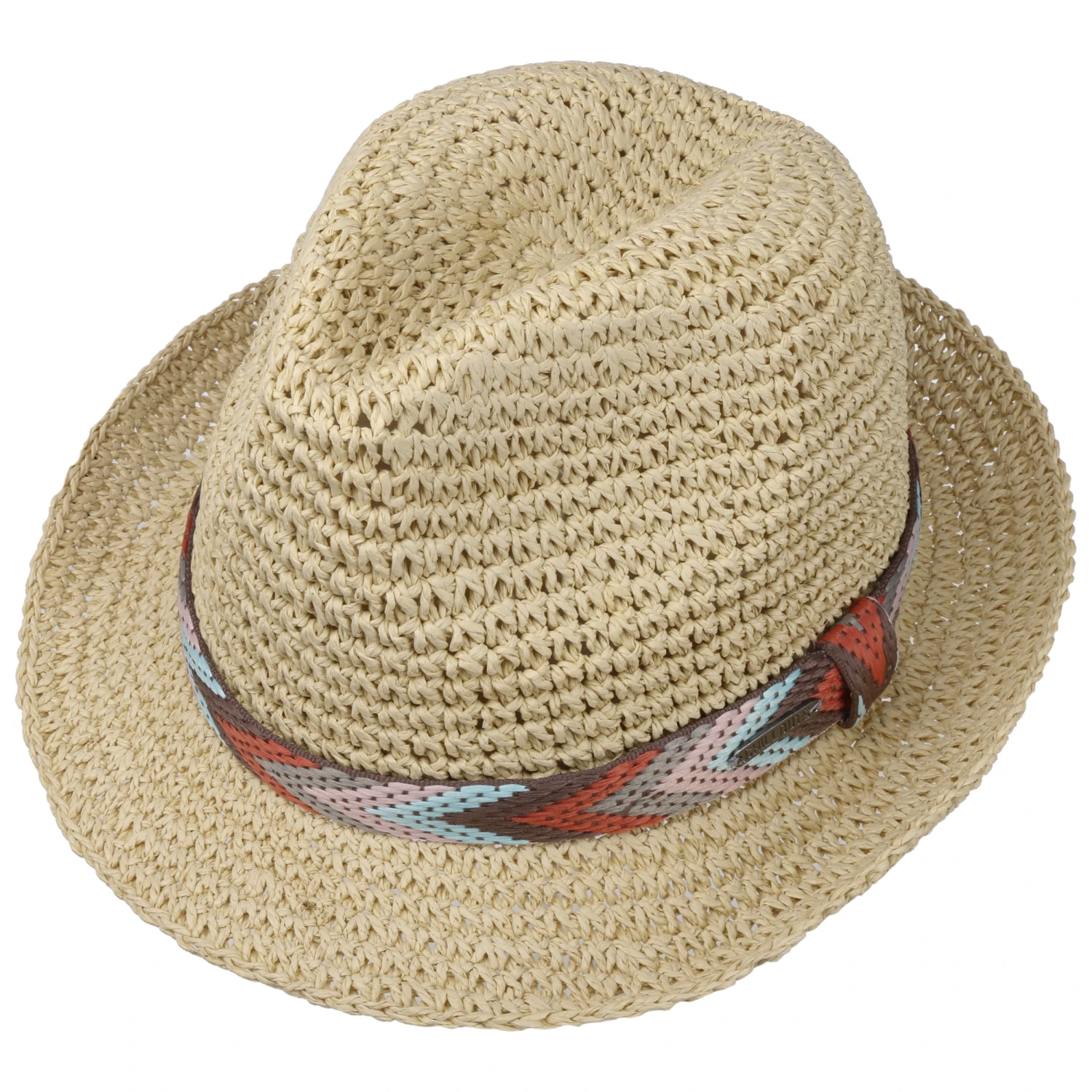 Sein grobmaschigen Flechtwerk aus 100% leichtem Papierstroh bringt die elegant verspielte Form des Trilby-Hutes von Chillouts auf originelle Weise zur Geltung.