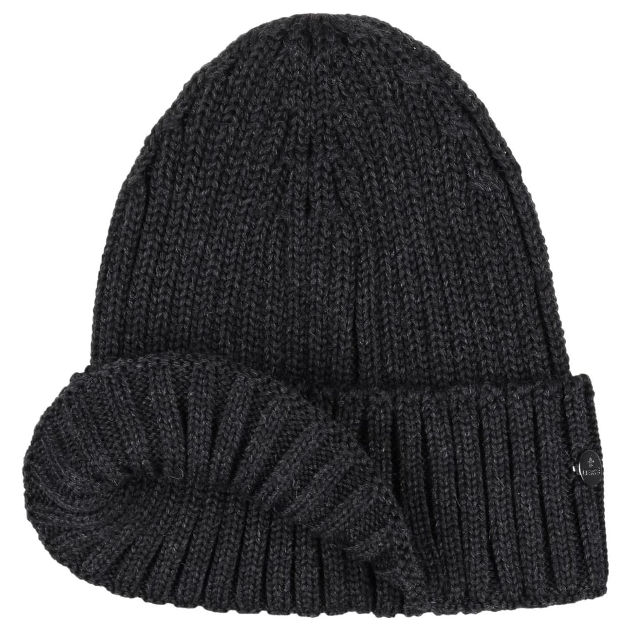 Aus 100% anschmiegsamer Merinowolle gefertigt ist die unifarbene Basicmütze ein Garant für optimalen Tragekomfort, der selbst bei eisigem Wind für ein angenehmes Kopfklima sorgt. Der breite Umschlag mit dezentem Metallemblem unterstreicht die maskuline Ausstrahlung der Wollmütze im Doppelrippmuster. Ob zur Bikerjacke oder zum Dufflecoat, die Strickmütze ist für jedes Mode-Statement zu haben.