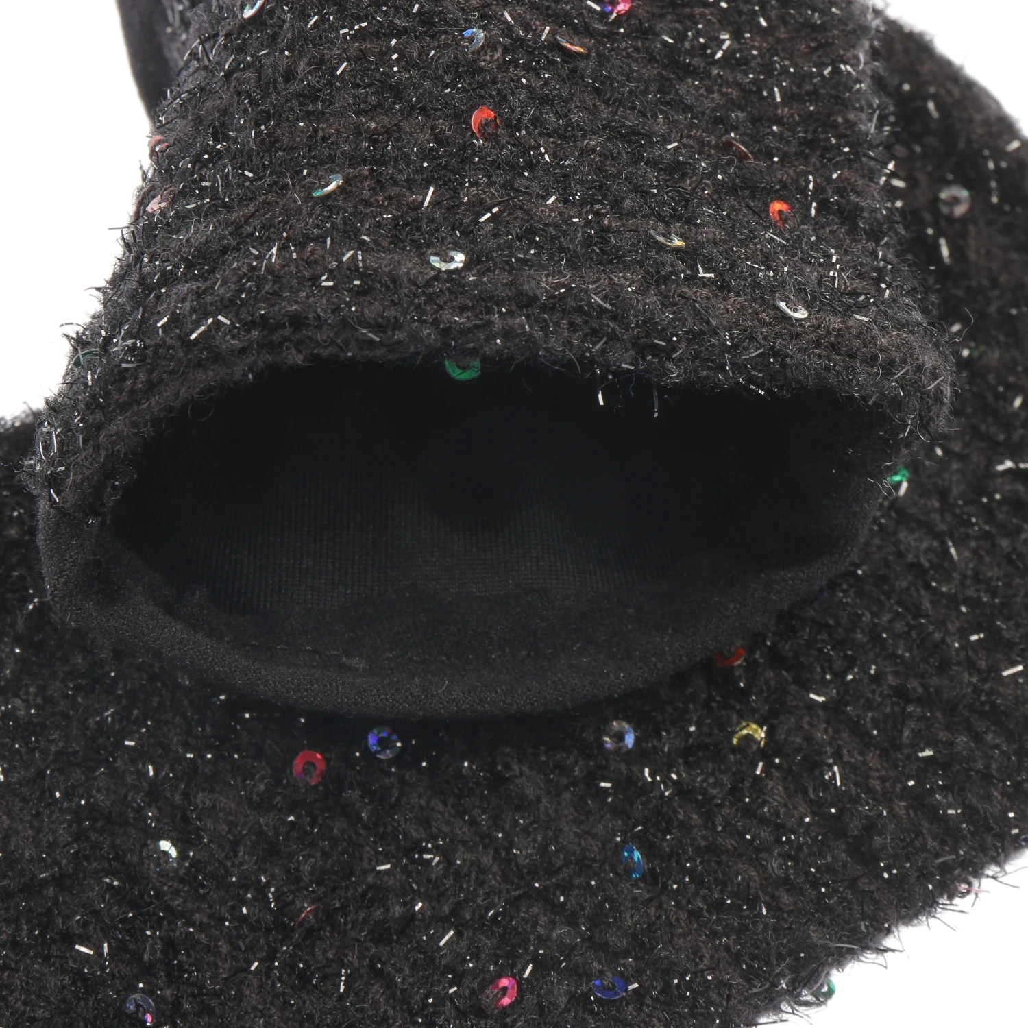 Die schlicht unifarbenen Fingerhandschuhe haben sich an den Handrücken mit bunt glitzernden Pailletten bestückt, was sie zu einem Hingucker macht.