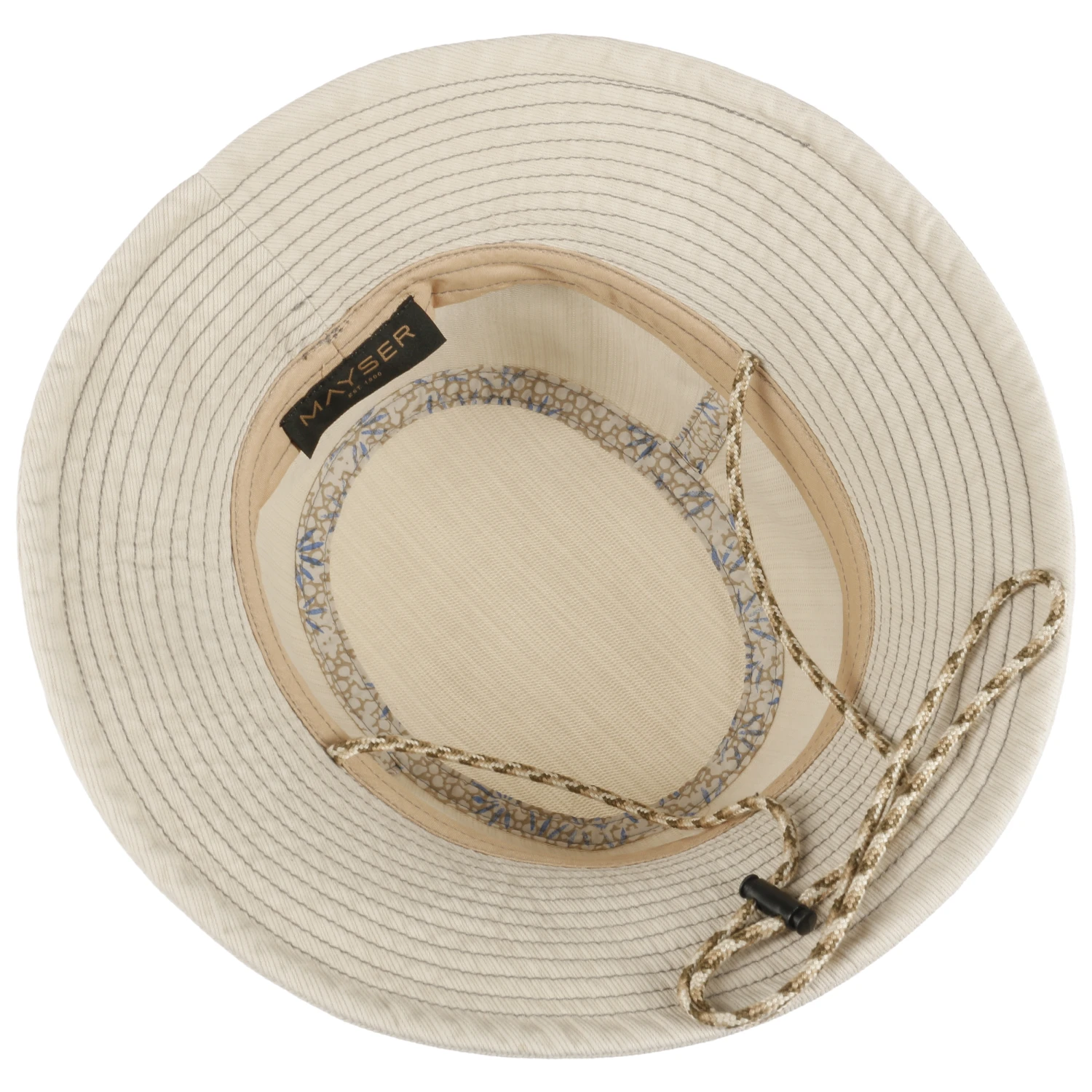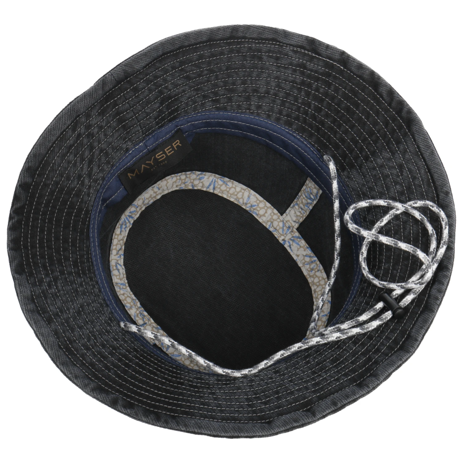 Der unifarbene Bucket Hat von Mayser besteht aus 100% atmungsaktiver Baumwolle, ist mit 80-fachem UV-Schutz sowie einem Kinnband ausgestattet und lässt sich dank seiner knautschbaren Qualität platzsparend in jeder Tasche verstauen.