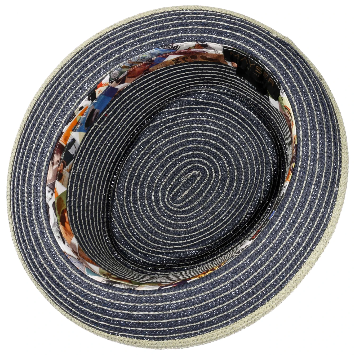 Die typische Silhouette eines Pork-Pie-Hutes zieht die Blicke mit ihrer vertikal ausgerichteten Kopfform auf sich. Eine schwungvoll nach oben gewölbte Krempe verleiht dem Design anregende Dynamik. Das Streifenmuster aus Ziernähten, das Kopf und Krempe ziert, betont die lebhafte Ausstrahlung des stilvollen sommerlichen Designs.