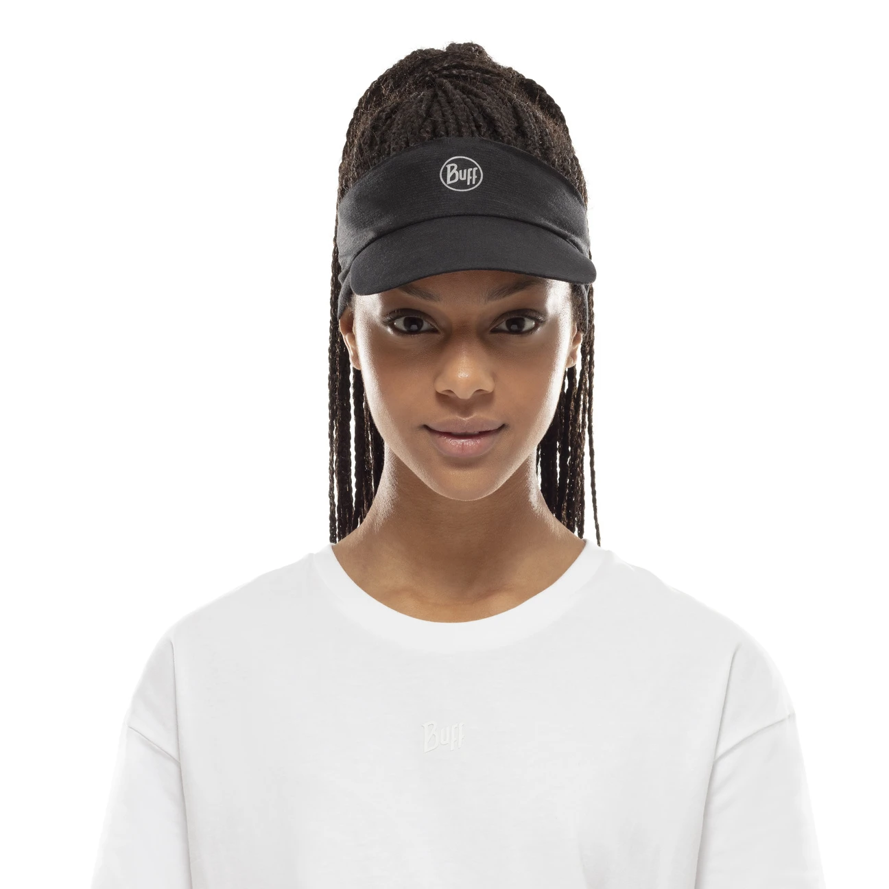 In unifarbenem Look zeigt sich der Visor mit dem frontalen Markenschriftzug von BUFF modisch und flexibel kombinierbar.