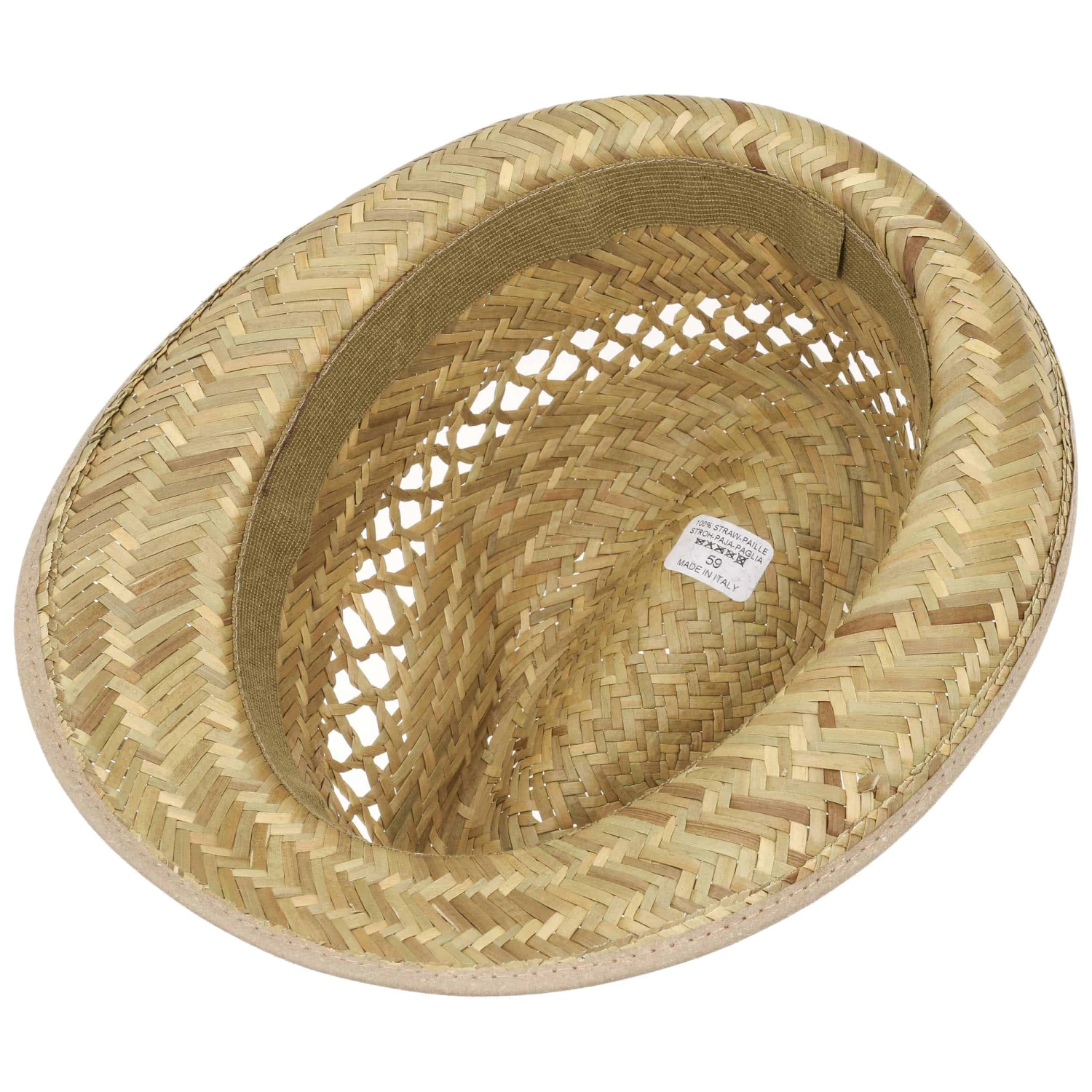 Ein lässig gestreiftes Ripsband hat sich der Strohtrilby von Lipodo umgelegt, das mit seiner Farbgebung die natürliche Ausstrahlung des Sommerhuts gekonnt unterstreicht.
