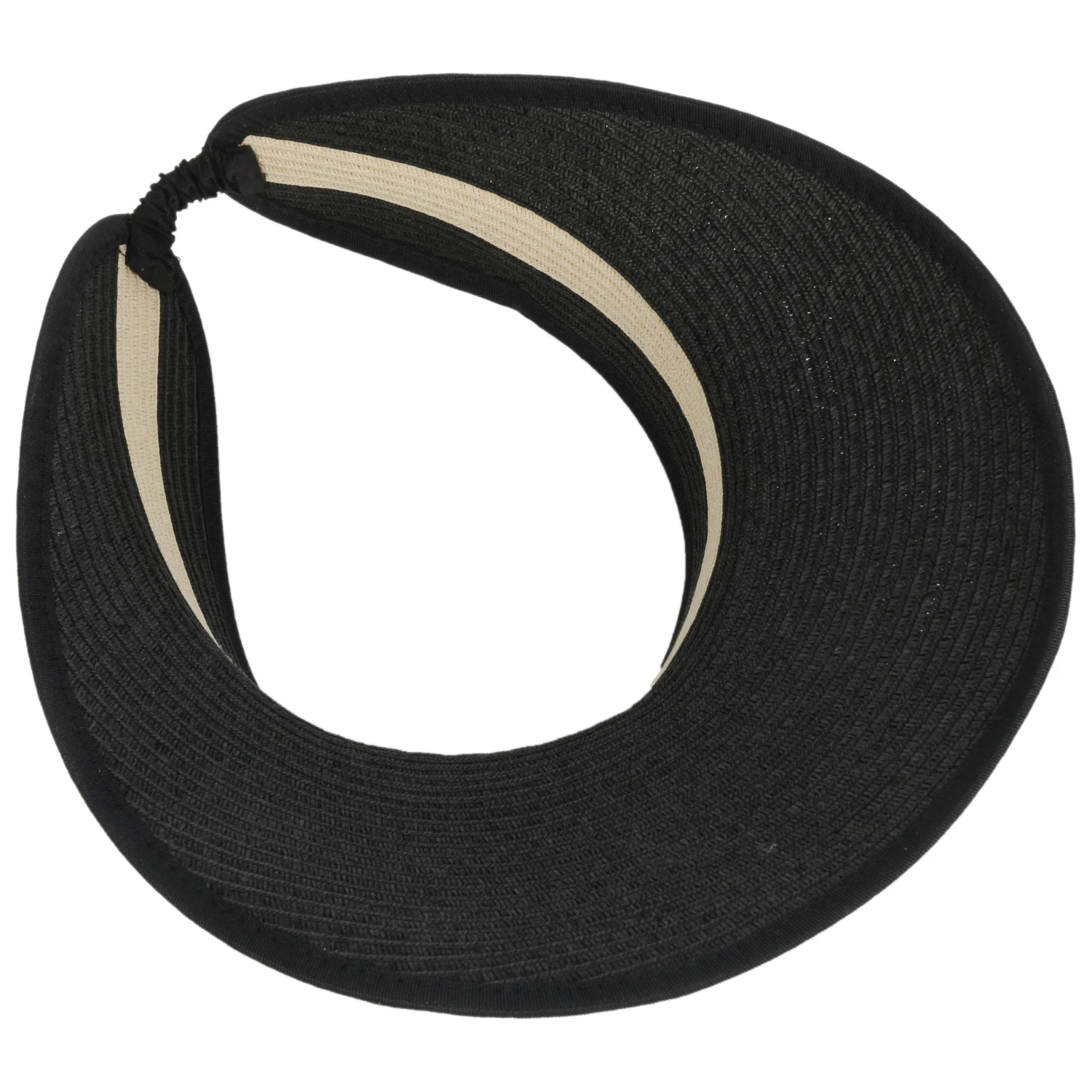 Borten aus flexiblem Papierstroh formen sich zu dem farbig gestreiften Visor und verleihen ihm sommerliche Leichtigkeit.