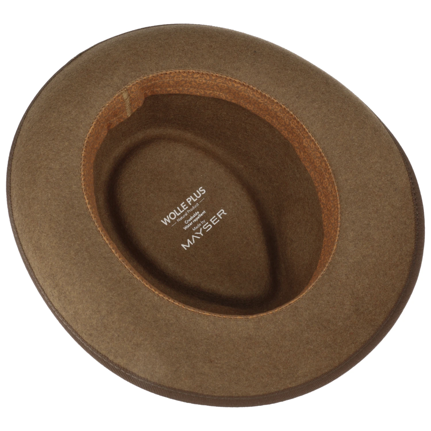 Die melierte Optik wird durch eine unifarbene Ripsbandgarnitur gekonnt betont und unterstreicht die gemütliche Robustheit, ein seitlicher Markenpin sowie der Markenschriftzug von Mayser in Inneren bekunden die Herkunft des Wollhutes.
