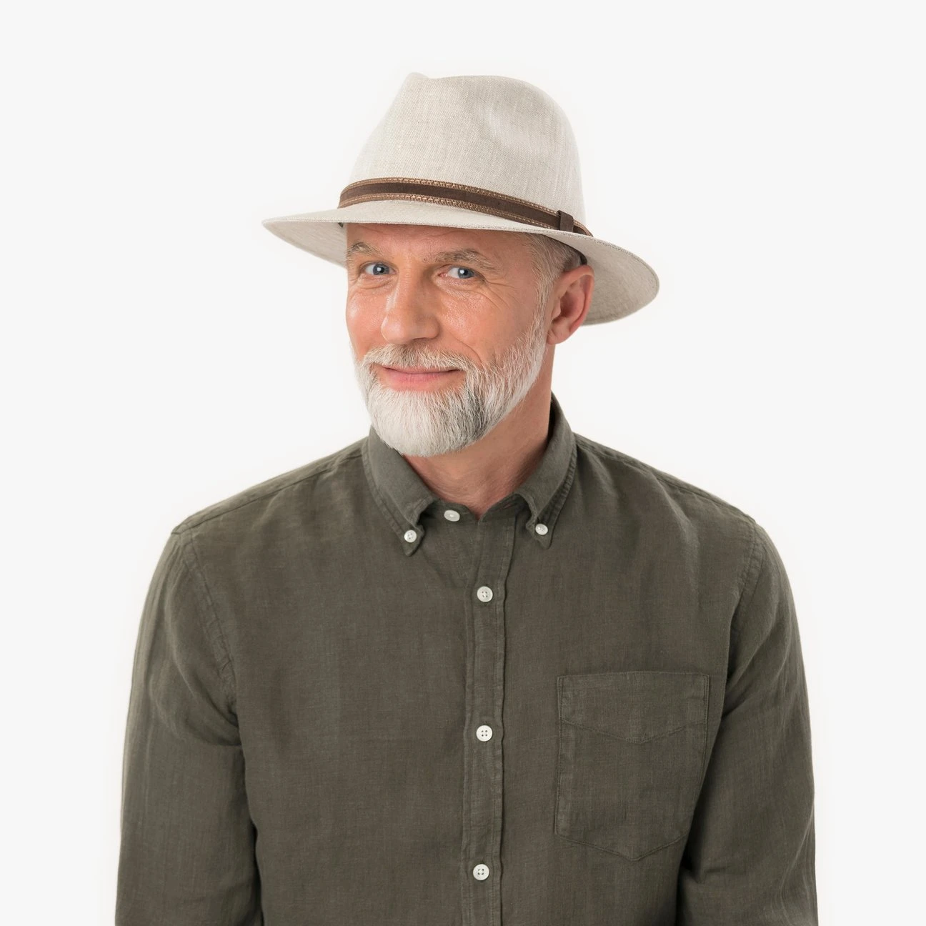 100% Leinen sorgt an heißen Tagen für ein frisches Tragegefühl. Mit seiner 6 cm breiten Krempe und dem edlen Ledergarniturband gehört der Sonnenhut definitiv zu den Klassikern. Zum Leinenanzug oder zu Shorts und Hemd, der einfarbige Herrenhut ist für City und Reise die perfekte Wahl.