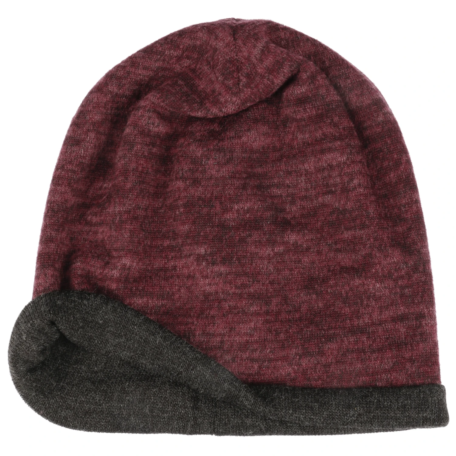 Melierter, weicher Stoff und ein schmaler unifarbener Rollrand – so präsentiert sich die modische Oversize-Beanie.