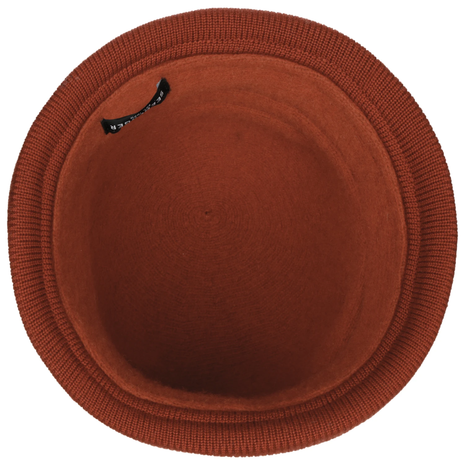 Aus hochwertiger Schurwolle mit warmem Charakter und in unifarben meliertem Design gefertigt präsentiert sich der Walkhut, der durch asymmetrische, halb umlaufende Biesen sowie einem schick aufgerollten Strickrand aus einer Wollmischung seine gelungene Vollendung erhält. Gemütlichkeit und Eleganz vereinen sich in dem Filzhut in gekonnter Kombination.