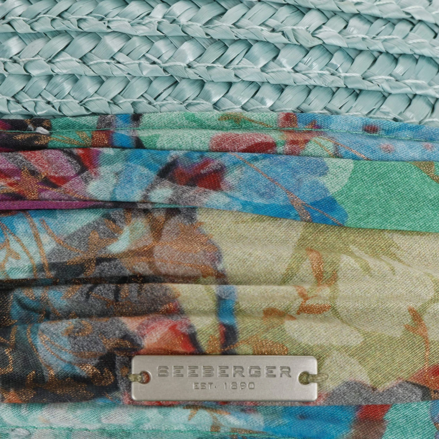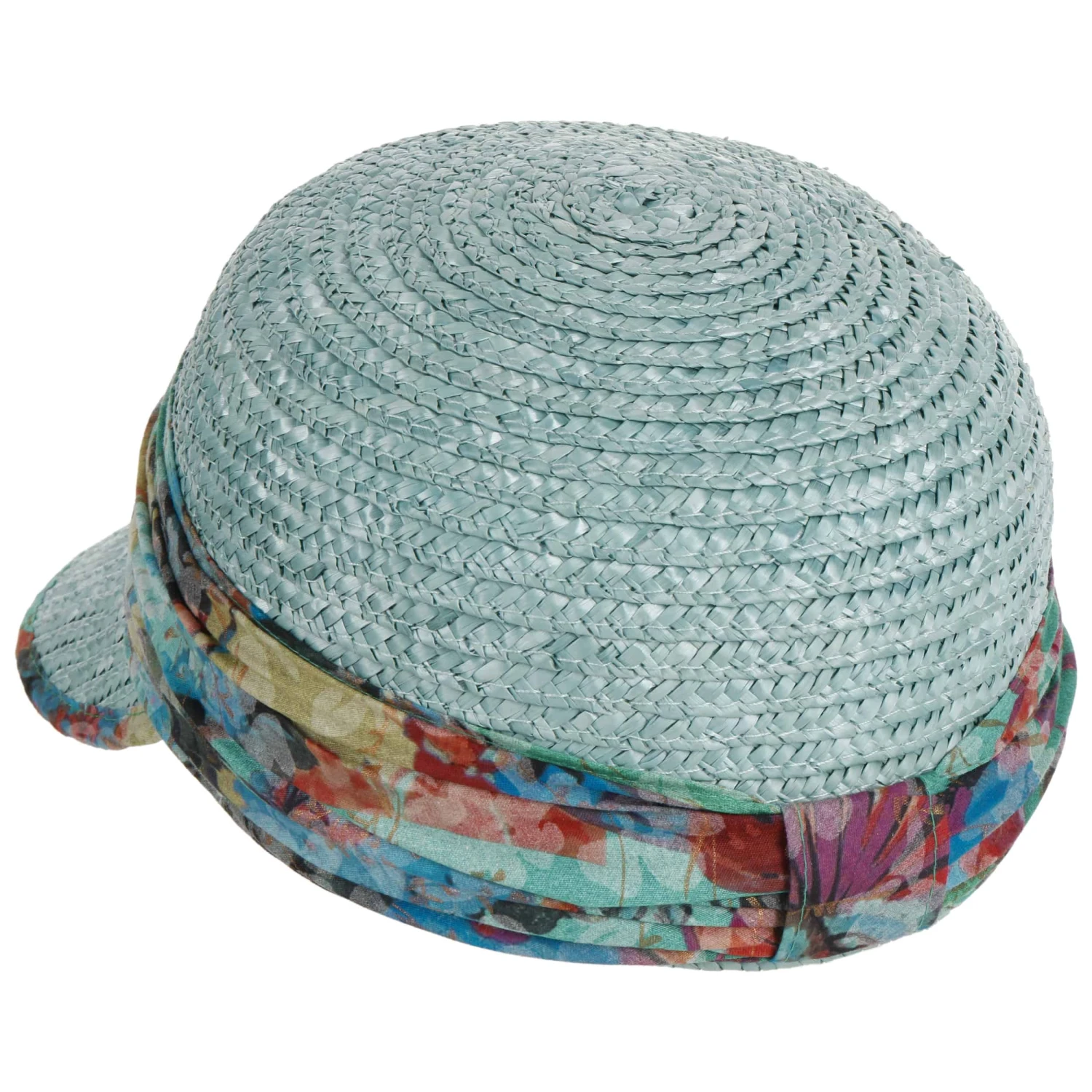 Der große Schirm aus 100% Stroh spendet dem Gesicht angenehmen Schatten. Zum Blickfang wird die Cap dank des floral gemusterten Stoffbands mit Baumwollanteil – ein Muster, das sich auch im Schirmeinfass wiederfindet.