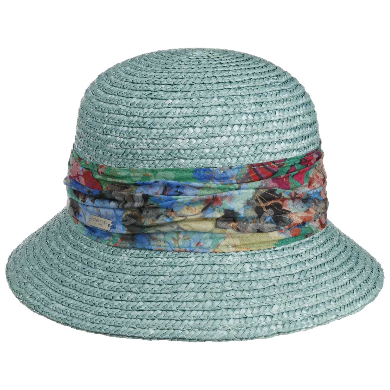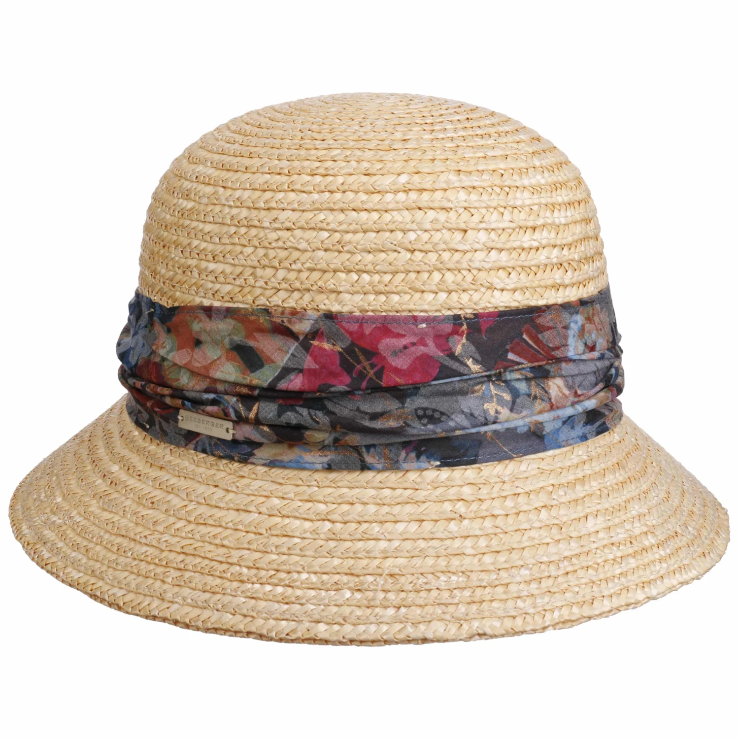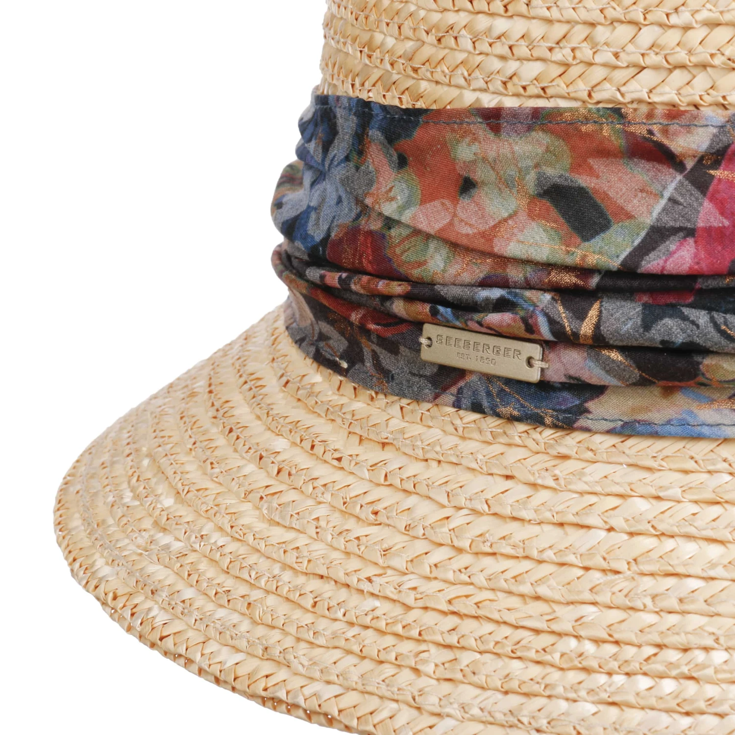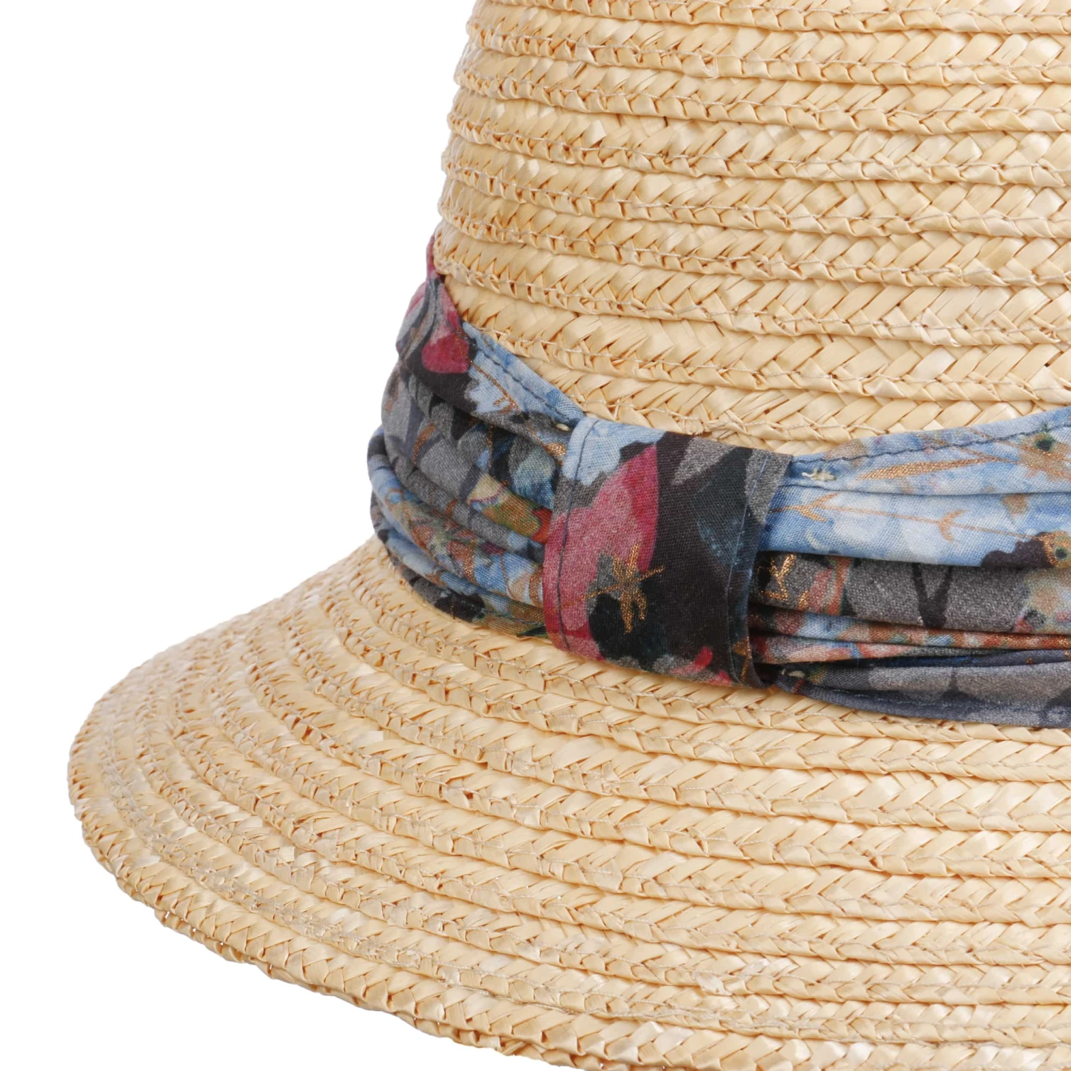 Leichte Borten aus 100% Stroh schützen den Kopf vor der Sonne und bieten zugleich angenehm luftigen Tragekomfort, während der floral gemusterte Stoffeinsatz mit weicher Baumwolle einen attraktiven Kontrast bildet. Ein Klettverschluss im Futterband erlaubt die individuelle Größeneinstellung.