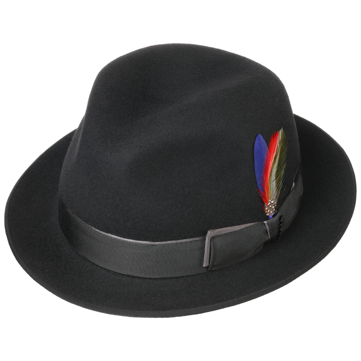 Der markante Player schmückt sich mit einem farblich perfekt abgestimmten Ripsband und einer keck eingesteckten Feder. Gefertigt aus 100% Wollfilz, erweist er sich als ebenso wärmend wie leicht und überzeugt bei feucht-kalter Witterung mit wasserabweisenden Eigenschaften. Das Futter aus 100% Baumwolle sorgt für atmungsaktiven Komfort.